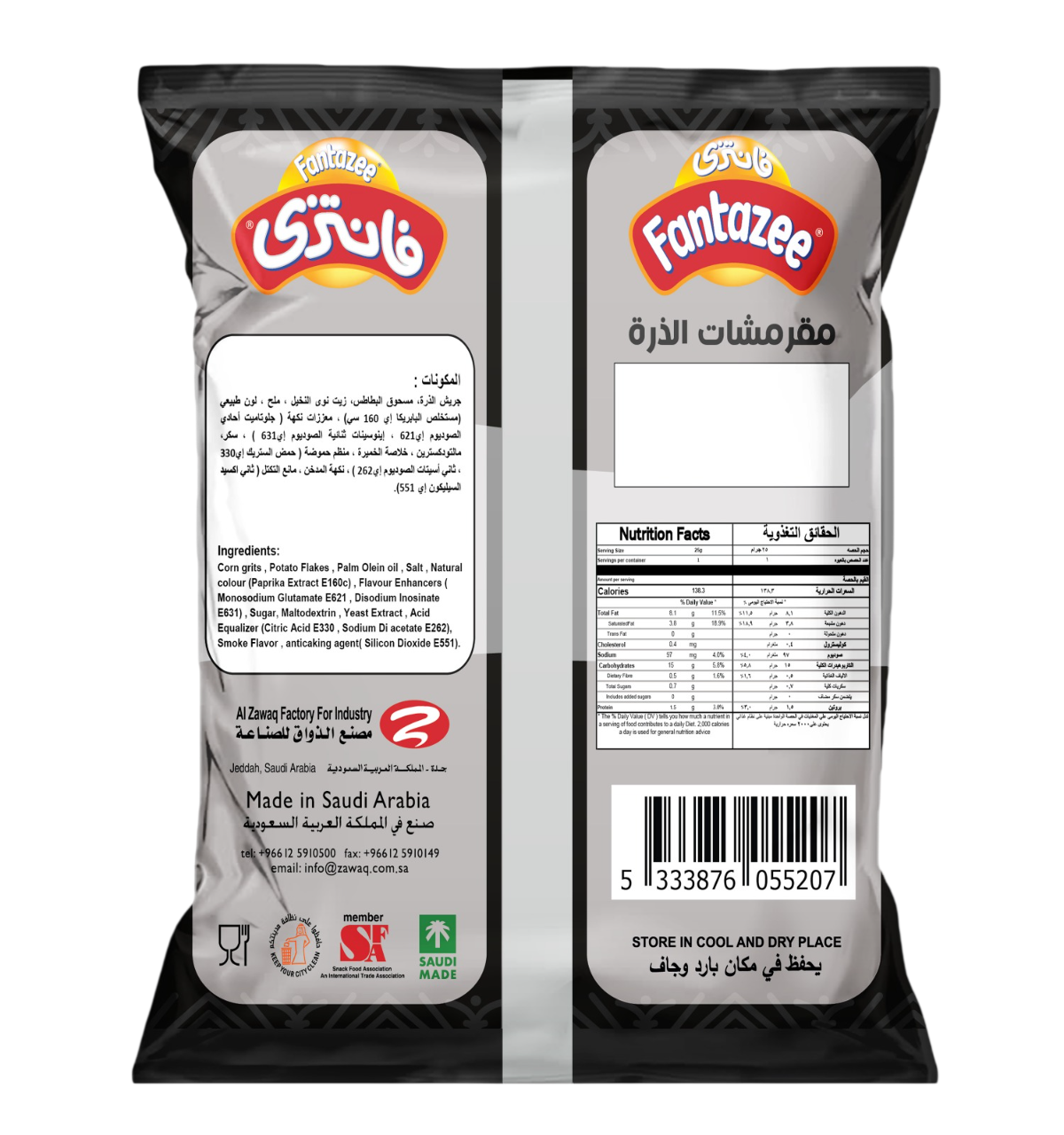 التورتيلا منتج مصنوع من مزيج من الذرة والبطاطس ومكونات مختارة أخرى. بنكهة المشويات اللذيذة حجم 24 جرام