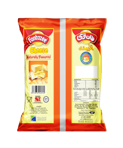 المنتج مصنوع من مزيج من مسحوق البطاطس ومكونات أخرى. بنكهة الملح . متوفر بأحجام مختلفة : 15 جرام ، 120 جرام .